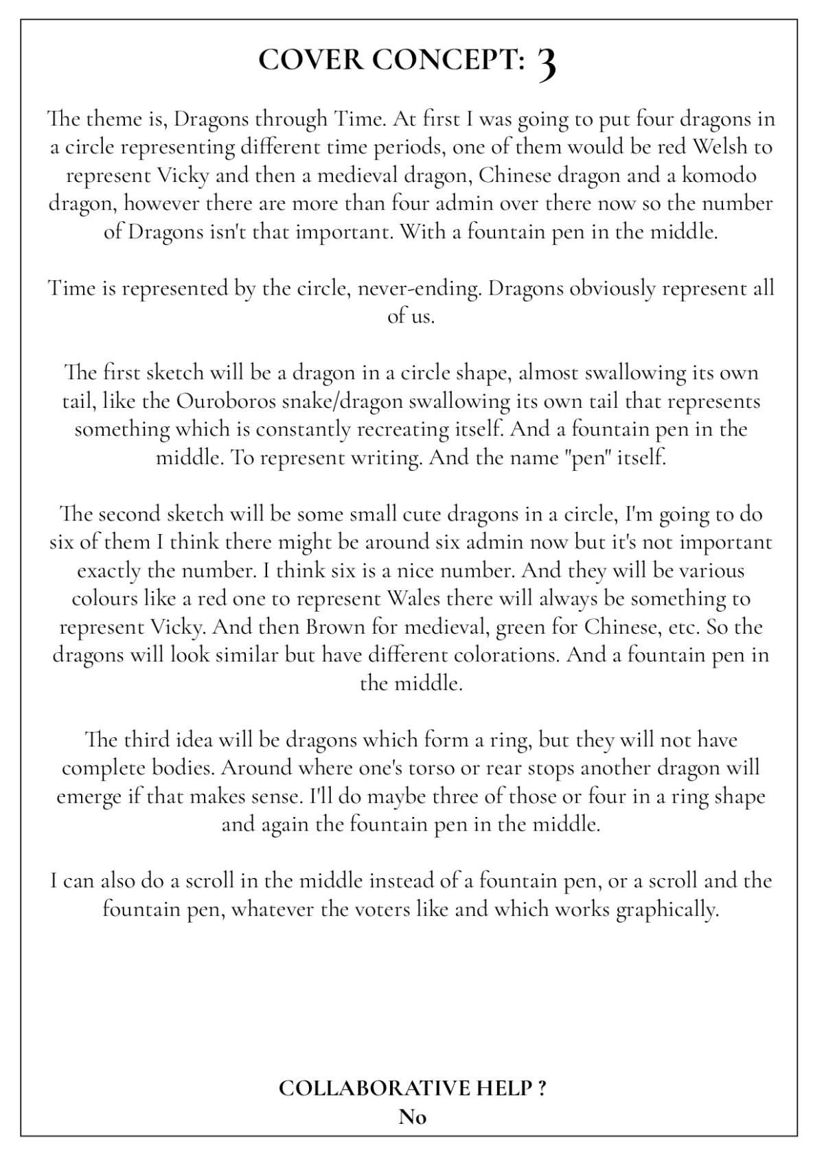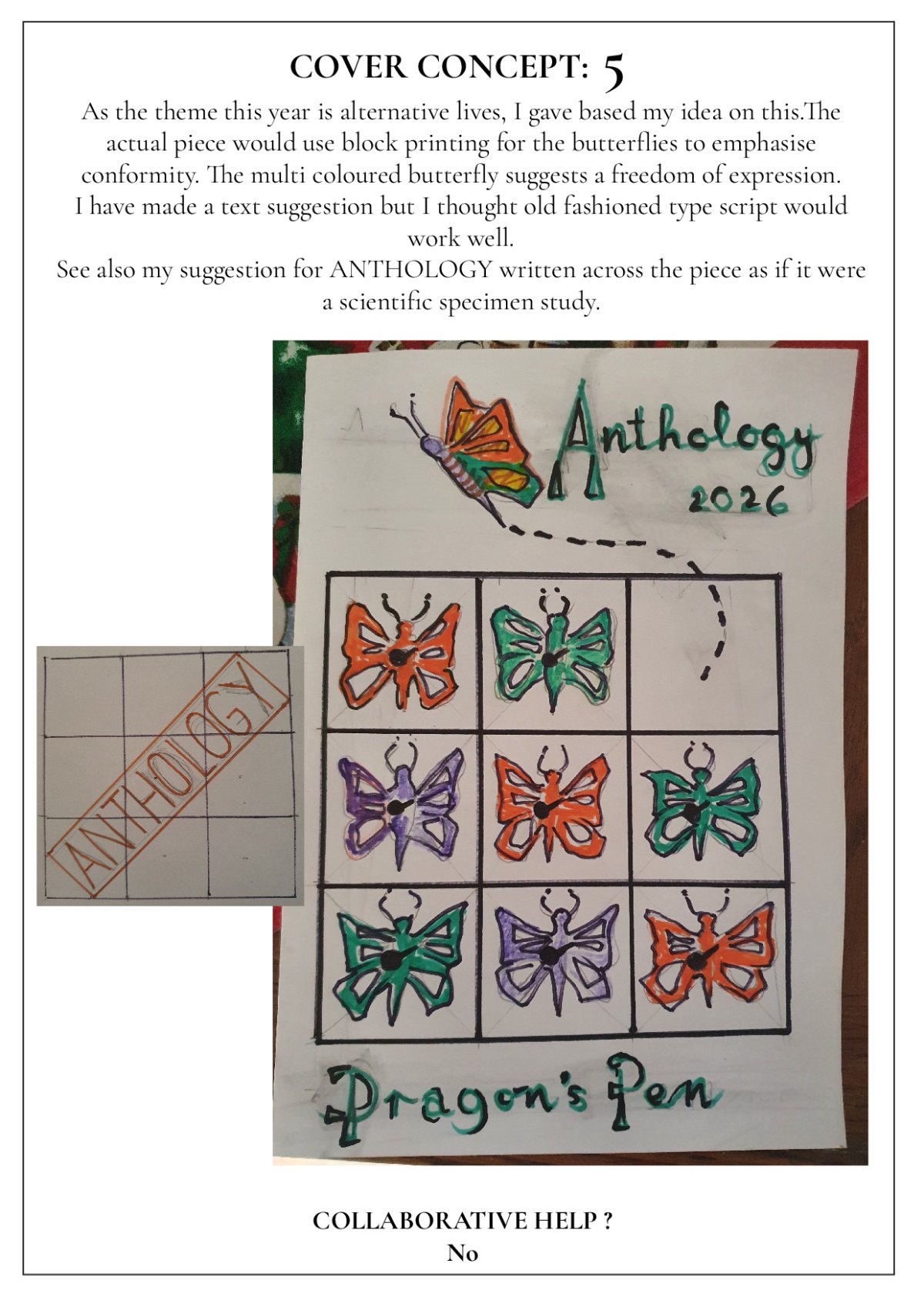 Below is a gallery of the 2026 Anthology cover design ideas - some are sketches, some are written ideas, some are more finished pieces - don't judge it on whether it is more finished or not - it's the IDEA you are voting for.